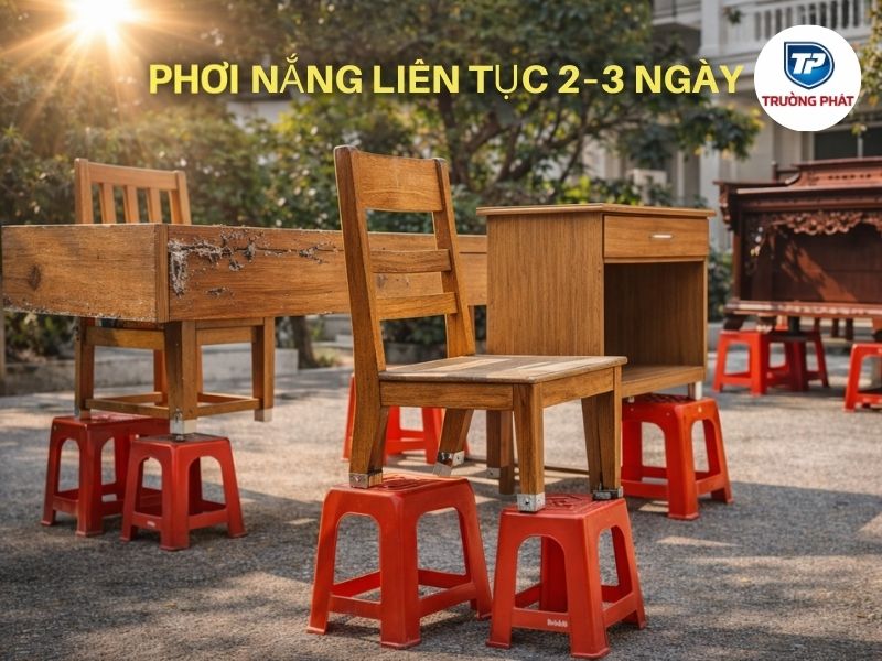 Cách làm: Treo/đặt đồ gỗ cách mặt đất để nắng chiếu đều.